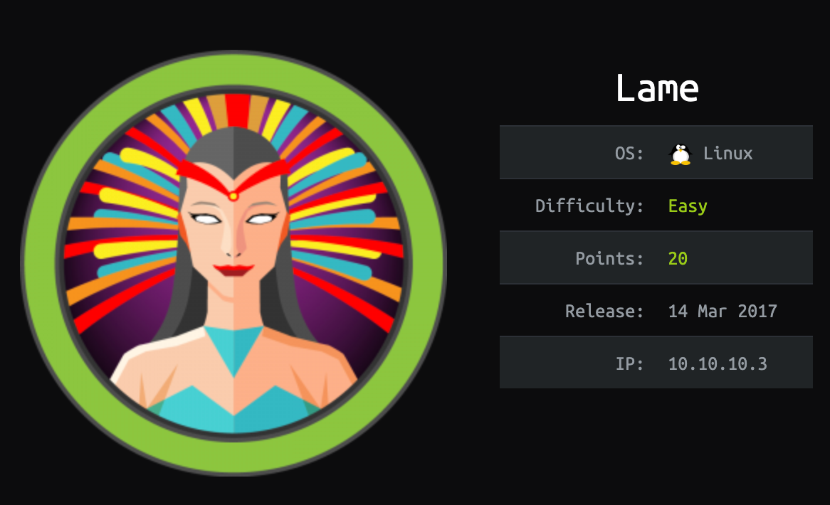 Lame is a retired machine available on the HackTheBox platform. It is the first machine published on HackTheBox. This room is rated as easy and recommended for beginners. This room is created by @ch4p.